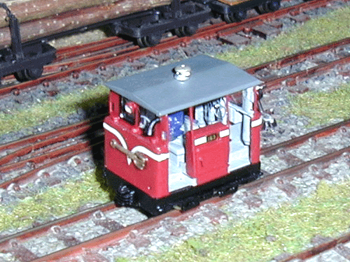 Die kleine japanische Benzinlok K 22D. Der Bausatz stammt von Ito-Works. Unmotorisiert, aber rollfähig.