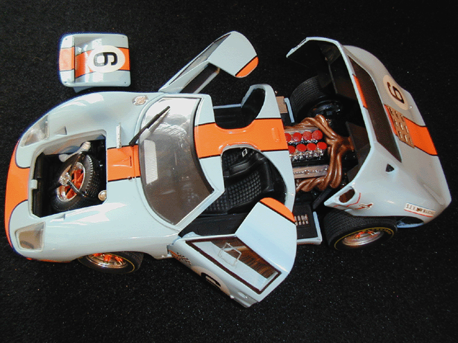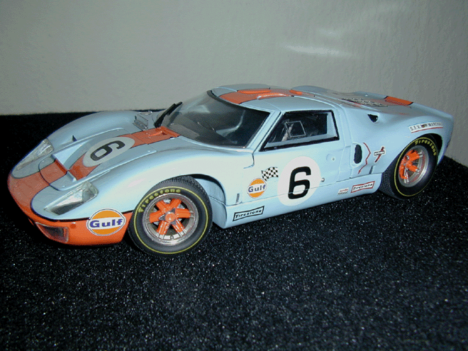 Der Jouef GT40 mit viel Malerei und Decals gesupert. Kein schlechtes Ergebnis. zurück / back / retour Mail